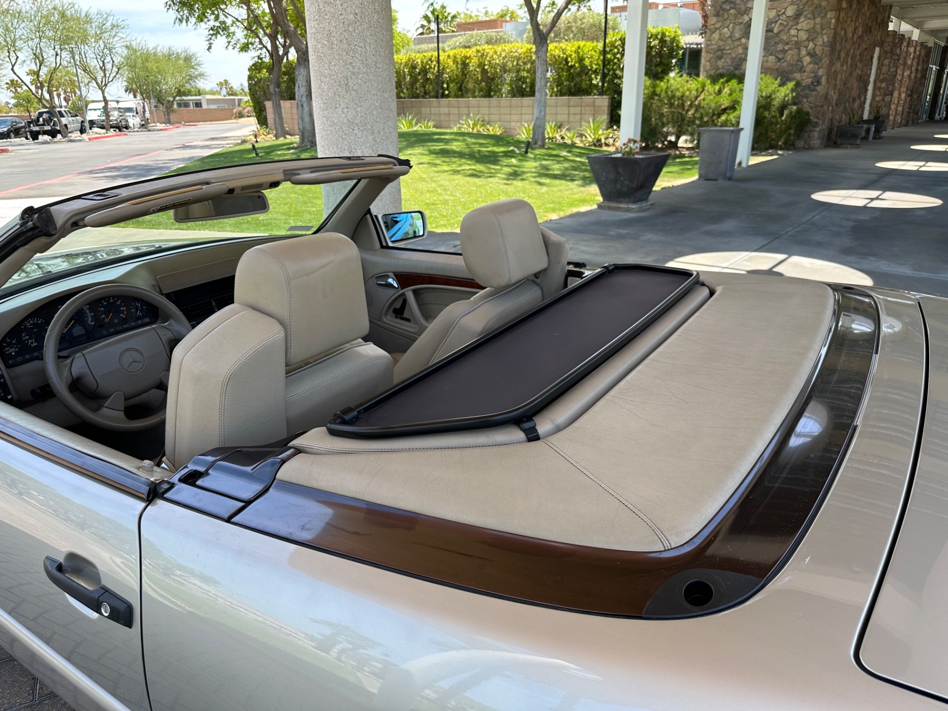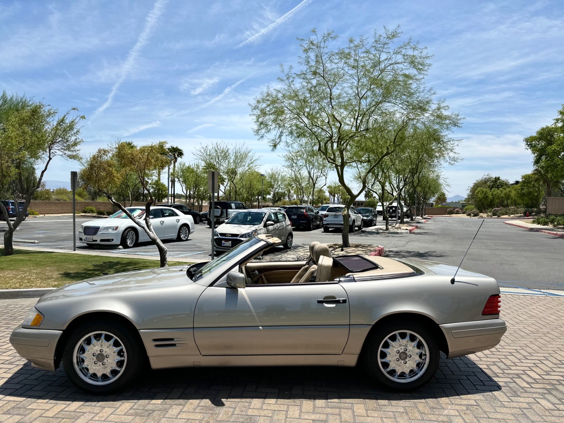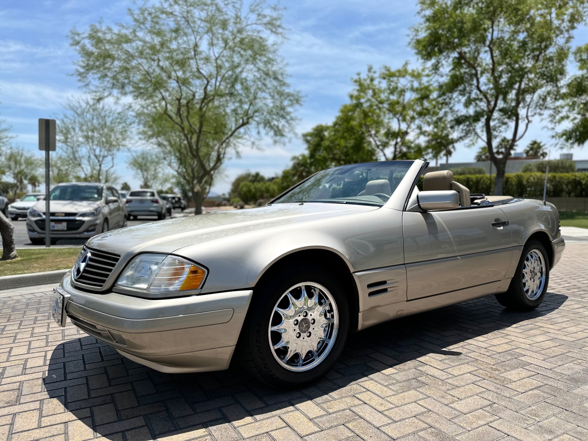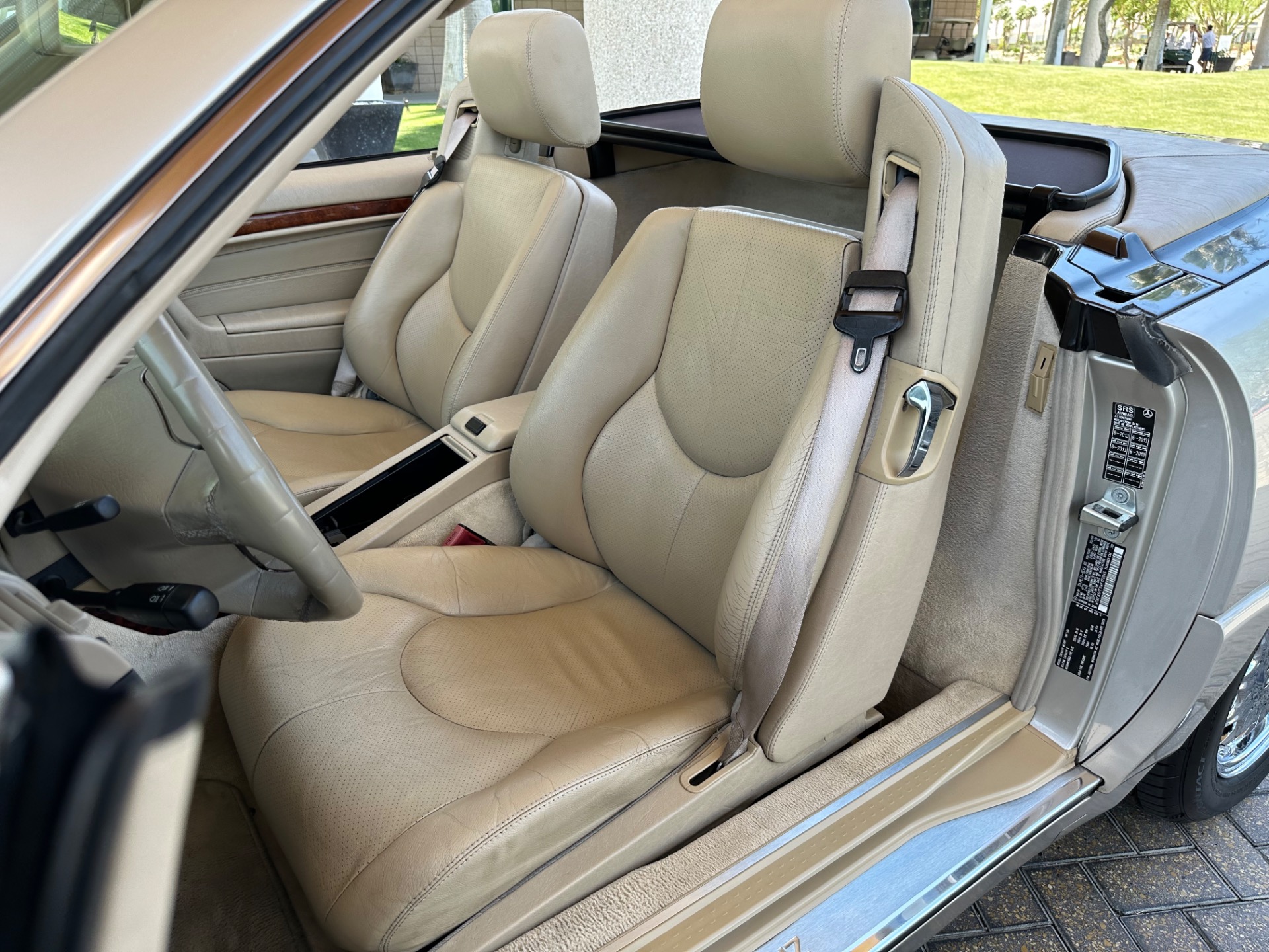 This sought after vehicle is in simply beautiful condition. The gold paint has a real depth of shine and the body is laser straight and has never suffered any accident damage. The tan leather interior is free of any blemishes or wear and has no unpleasant odors. The powerful V8 engine runs very well and has no smoking, leaking or unusual mechanical noise issues. The automatic transmission shifts smoothly and does not have any juddering or slipping. The power soft top operates perfectly and quietly and the removable hard top has the desirable panoramic glass roof and is pristine. This vehicle has also recently benefitted from nearly eight thousand dollars worth of service and maintenance work at the dealer in addition to four new premium quality tires.